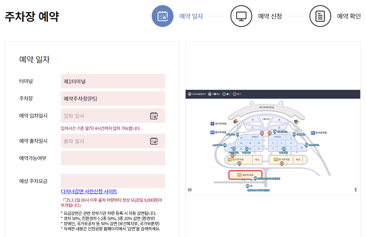 장기주차장 예약은 홈페이지를 통해서 간편히 할 수 있습니다. 본인의 탑승 터미널은 확인하고 입차와 출차 시기를 입력하시면 예약가능 여부와 주차요금이 자동으로 계산되어 나옵니다. 밑에 링크를 통해서 이용해 보세요.
