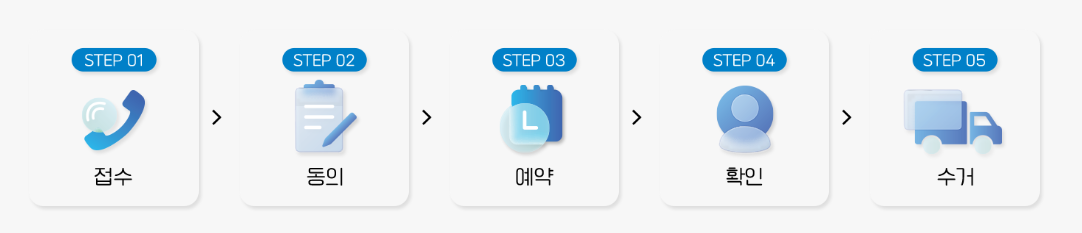 ⑤ 희망일에 맞춰 집 앞에 폐가전을 놓으면 수거반이 방문하여 수거